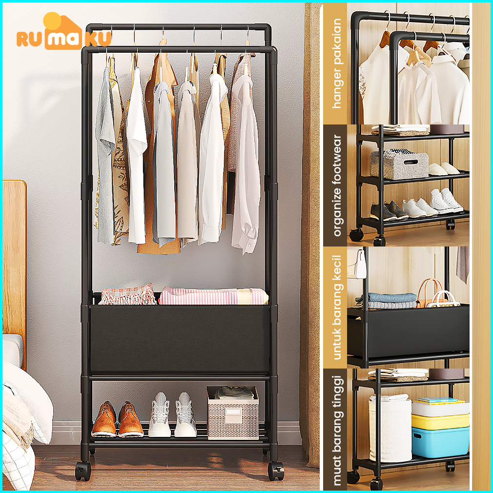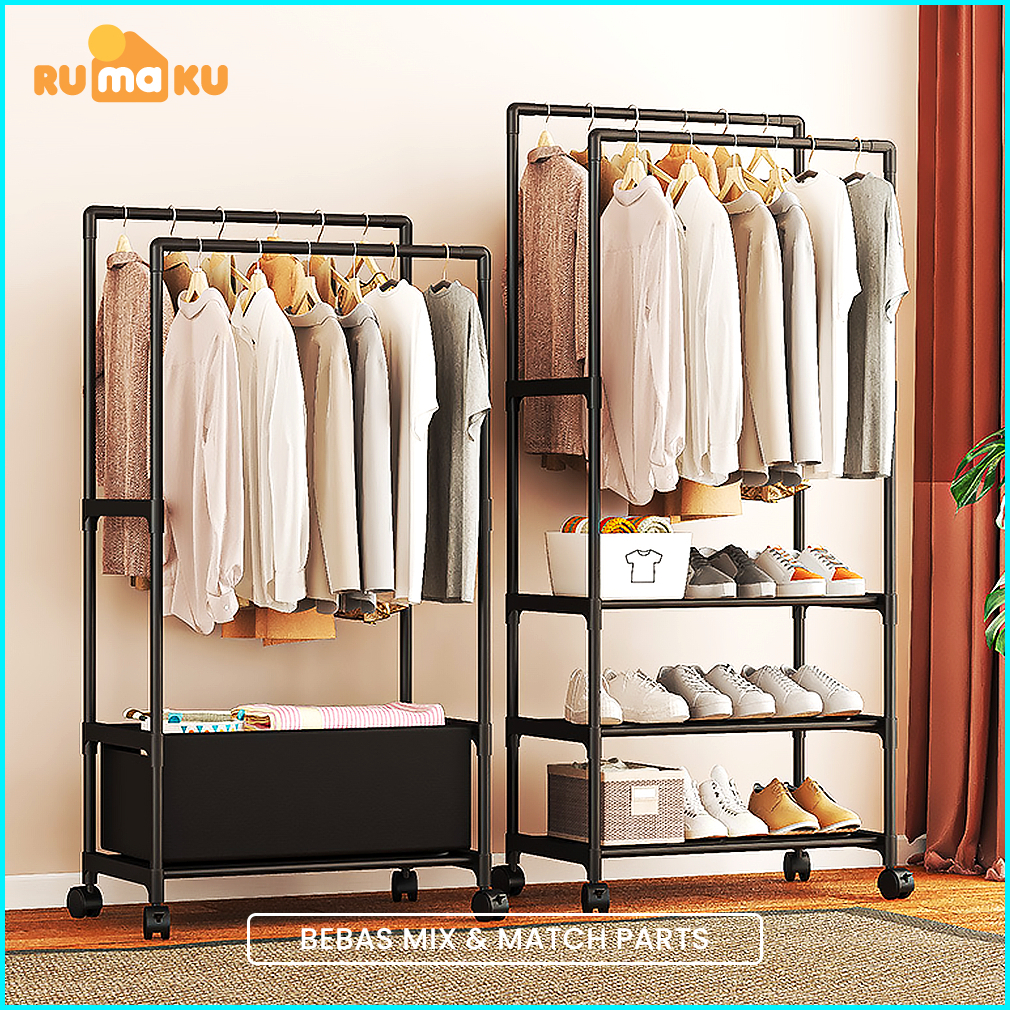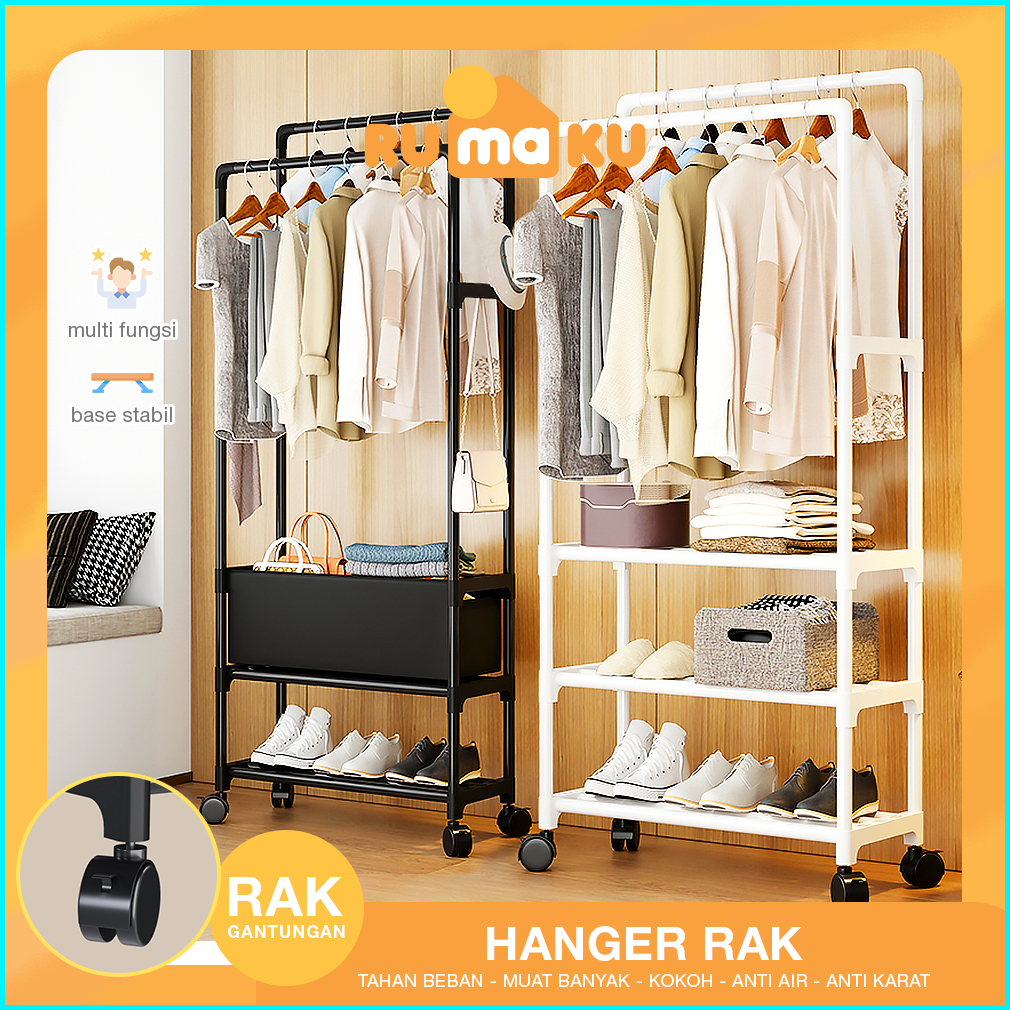 Rumaku Stand Hanger Rak Gantungan Baju Jemuran Pakaian Berdiri Bahan Besi Premium