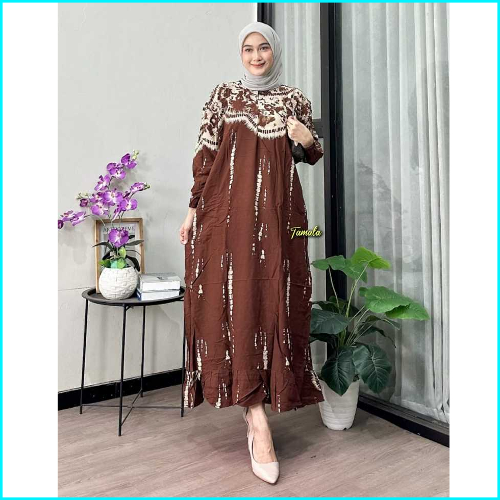 Daster Dress Rayon Rempel Busui Lengan Panjang Homedress Batik Pekalongan Ori