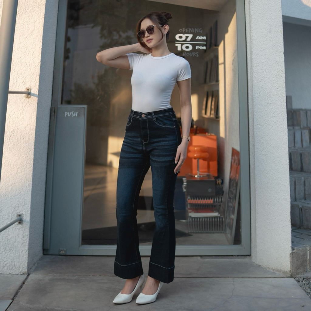 JINAMORACelana Jeans Cutbray Wanita Kekinian Lipat Lebar | Highwaist Cutbray Jeans Stretch