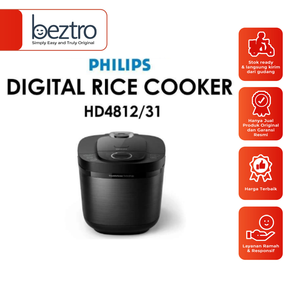 Philips Digital Rice Cooker HD 4812 - Kapasitas 1.8 Liter 400 Watt Binchotan Coating Black HD4812/31