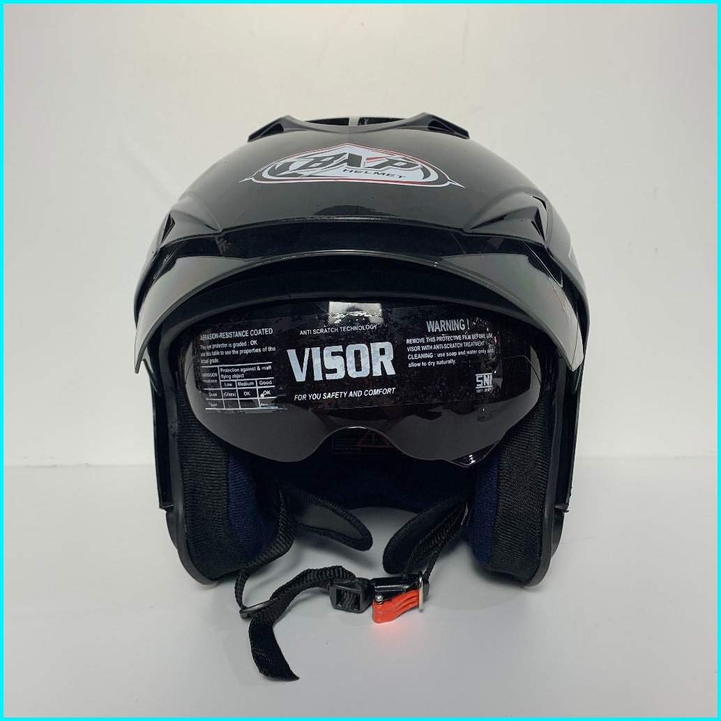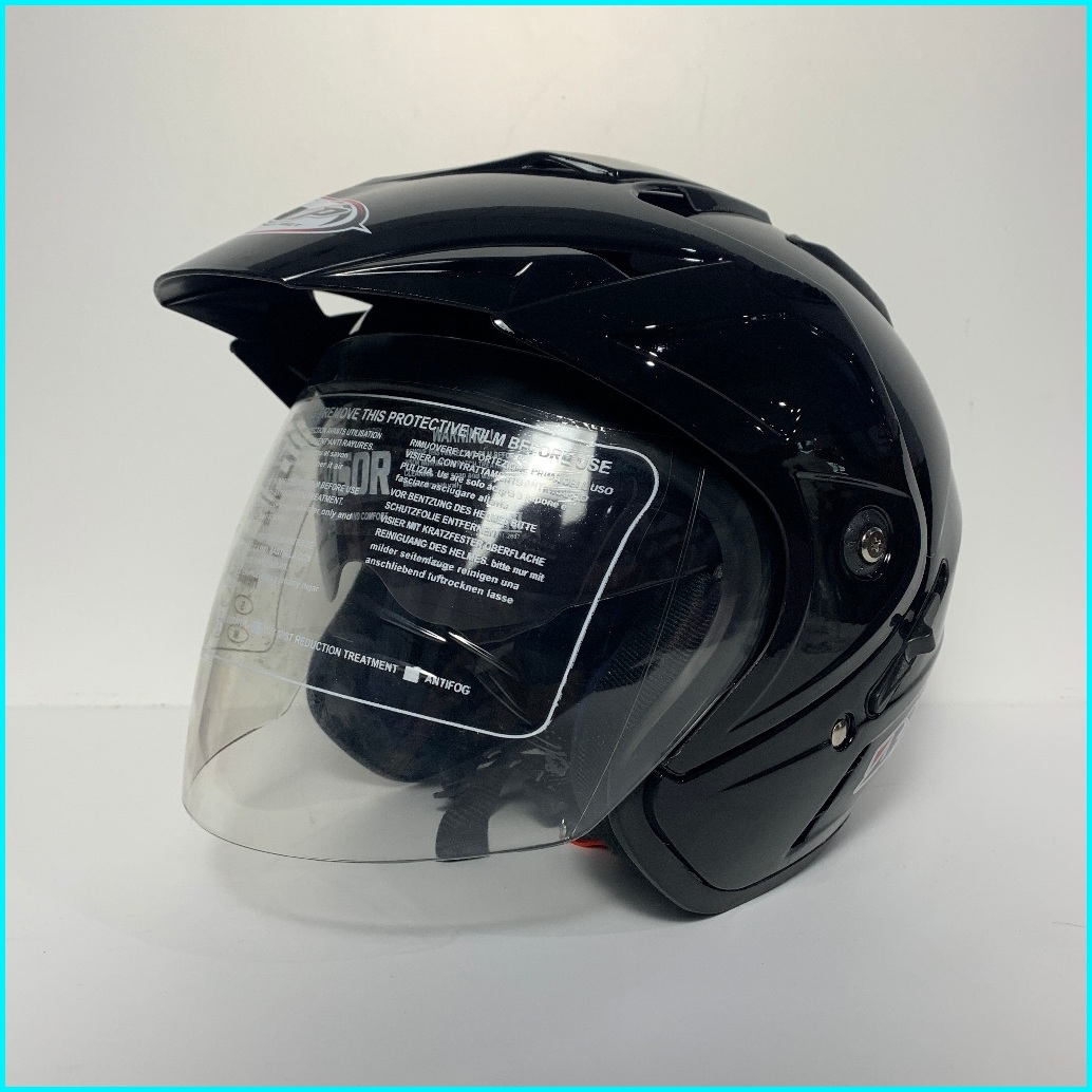 Helm Jp7 Hitam Glossy - Sni Dewasa Polos Double Visor Helem Helmet Bxp