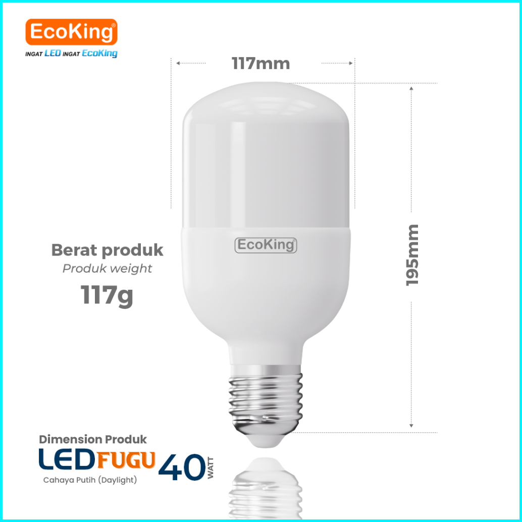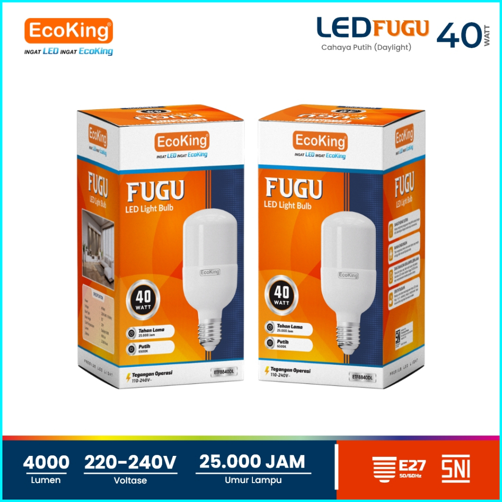 Ecoking Lampu Bohlam Rumah Murah Led Fugu Kapsul 40w Cahaya Putih Etf8840dl