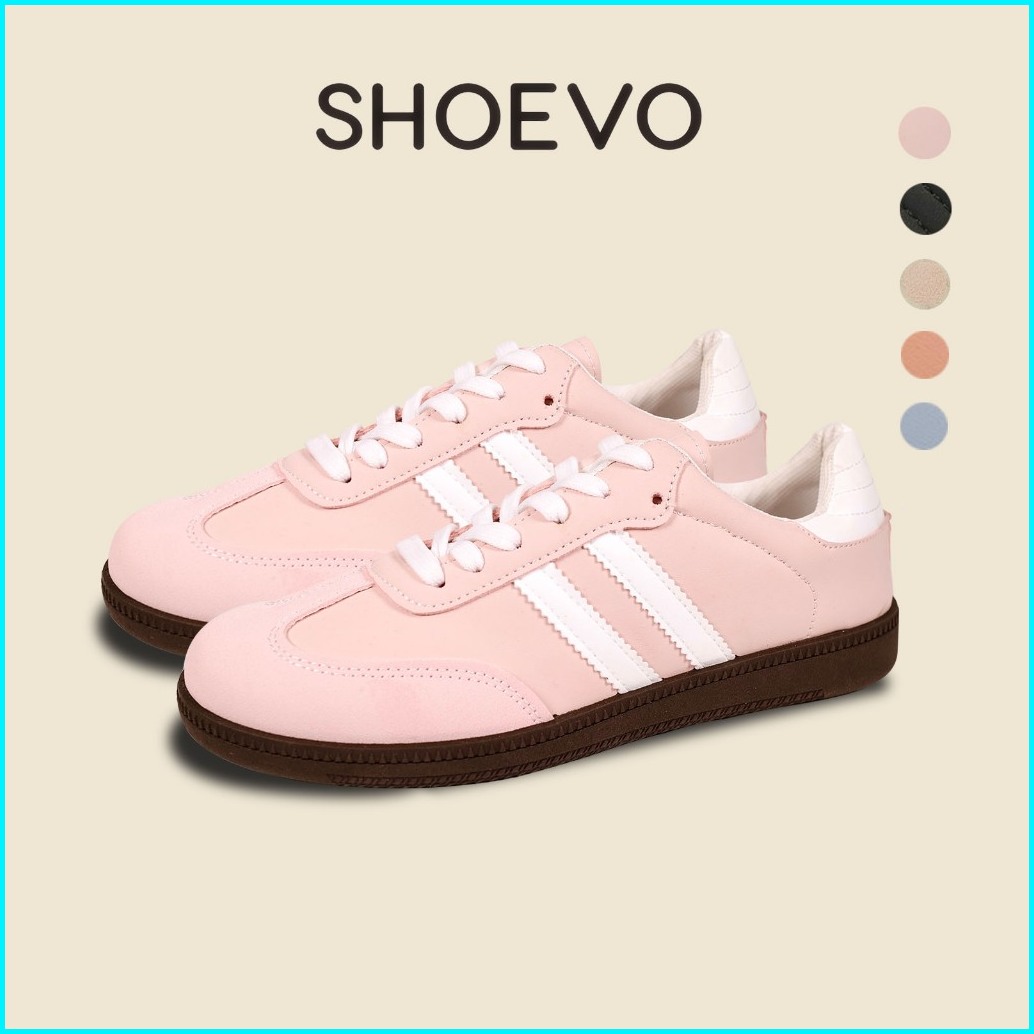 Shoevo Sepatu Wanita Sam-ba Sneakers Fashionable Hitam Cream Bahan Berkualitas Tinggi Bernapas Antibakteri Nyaman Untuk