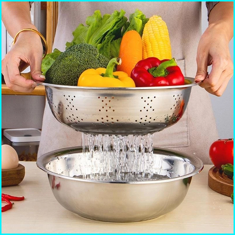 Baskom Parutan Saringan Stainless Serbaguna Tirisan Baskom Cuci Sayur Wortel