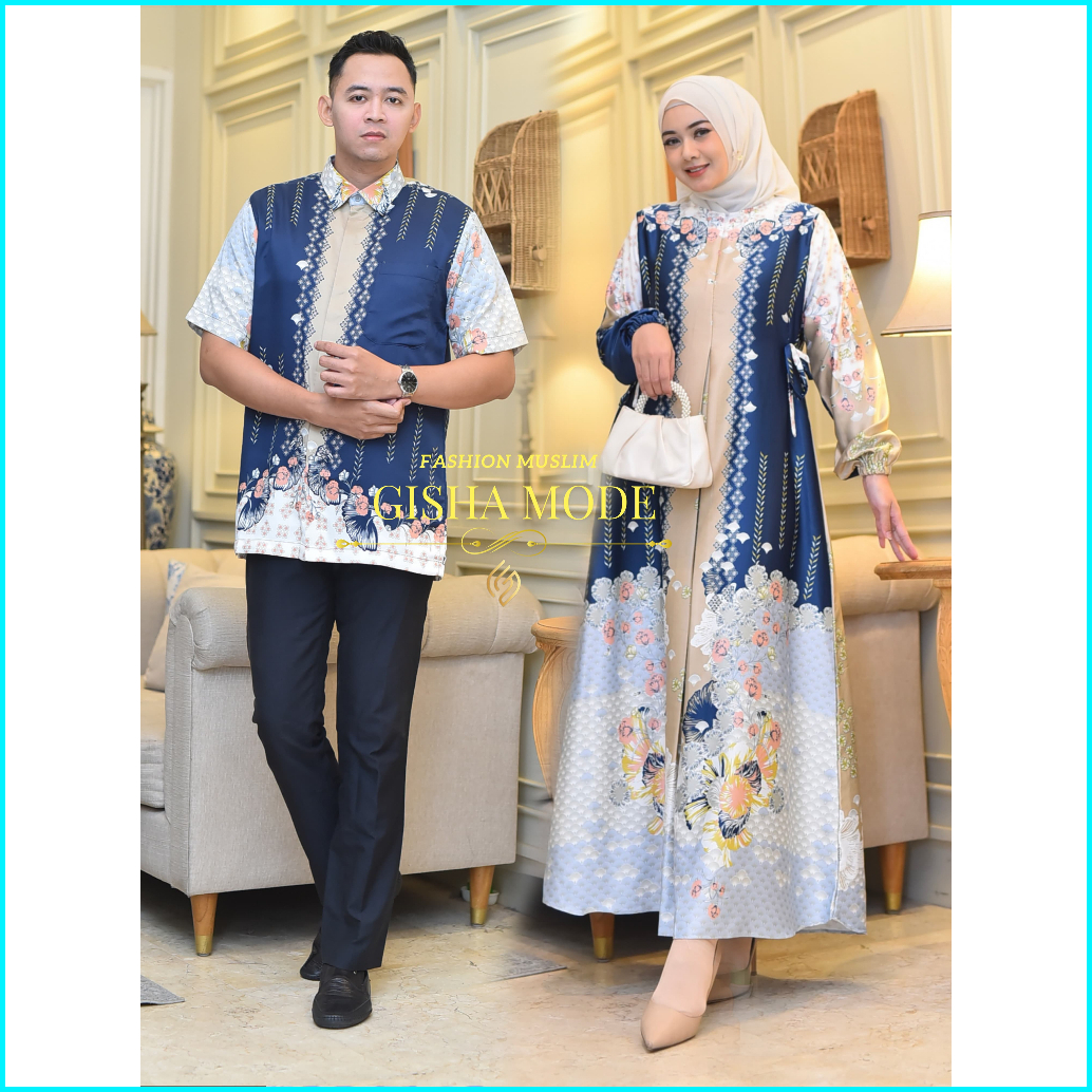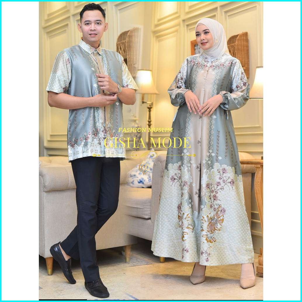 Couple Pasangan Gamis Medinna Silk Premium Gamis Motif Bunga Mewah Bestseller Couple Kemeja Dan Gamis Lebaran
