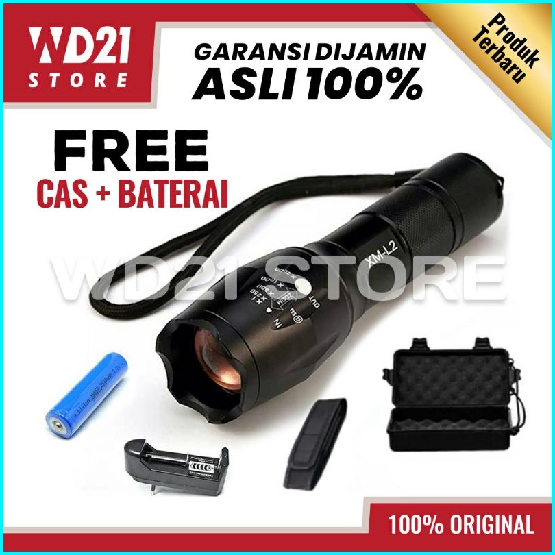 100 Original Paket Senter Led Tactical Flashlight Cree 8000 Lumens Baterai 18650 Charger