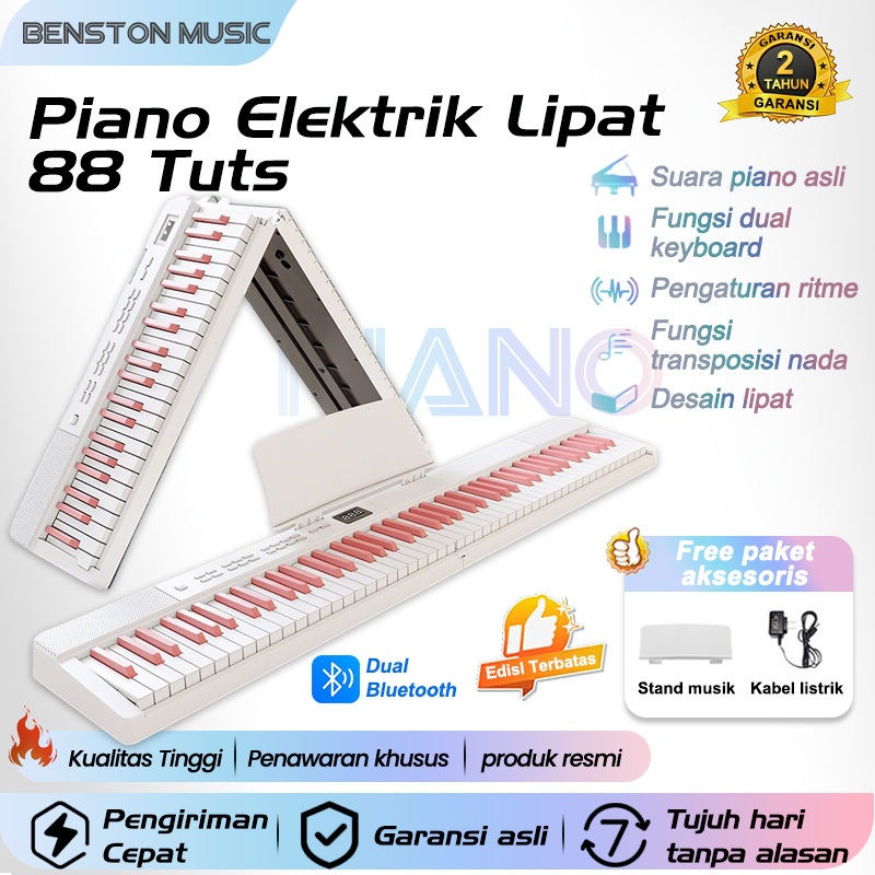 Benston Music- Piano Elektrik Lipat 88 Tuts – Portabel untuk Pemula dan Dewasa, Cocok Belajar di Rumah maupun Ujian Tingkat Profesional