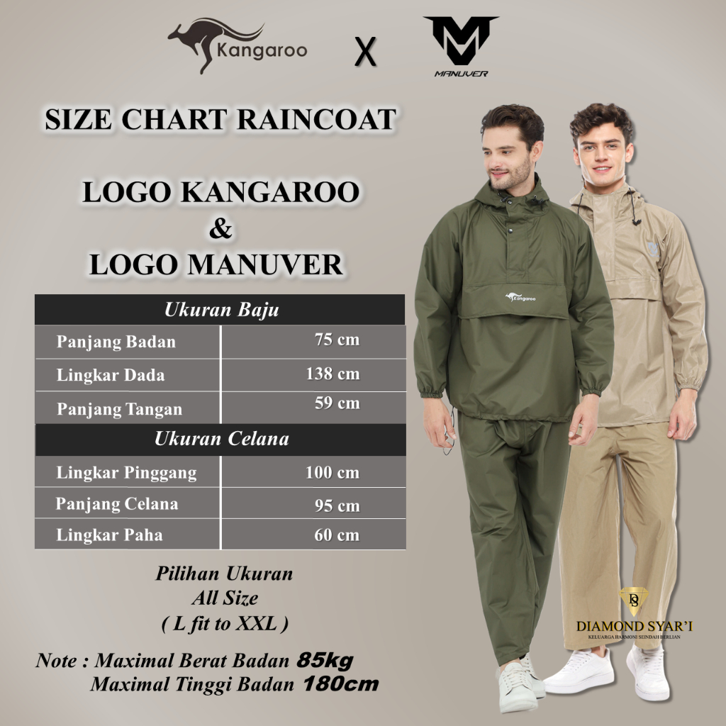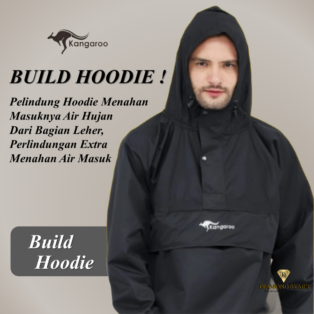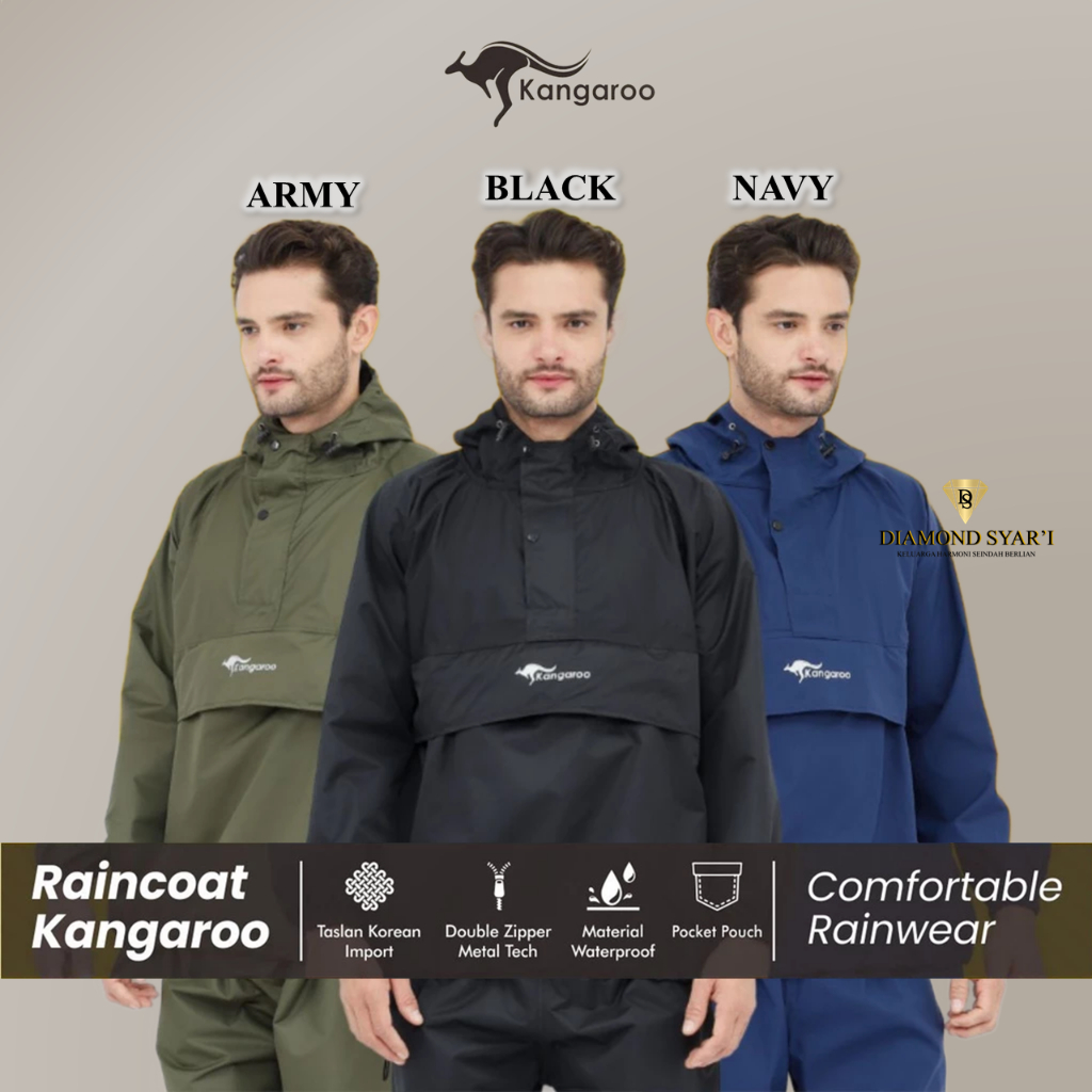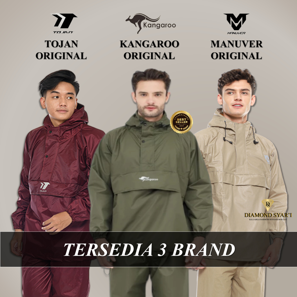 Jas Hujan Pria Wanita Setelan Jumbo Xxxl Saku Kangguru Mantel Hujan Bahan Premium Tebal Anti Rembes