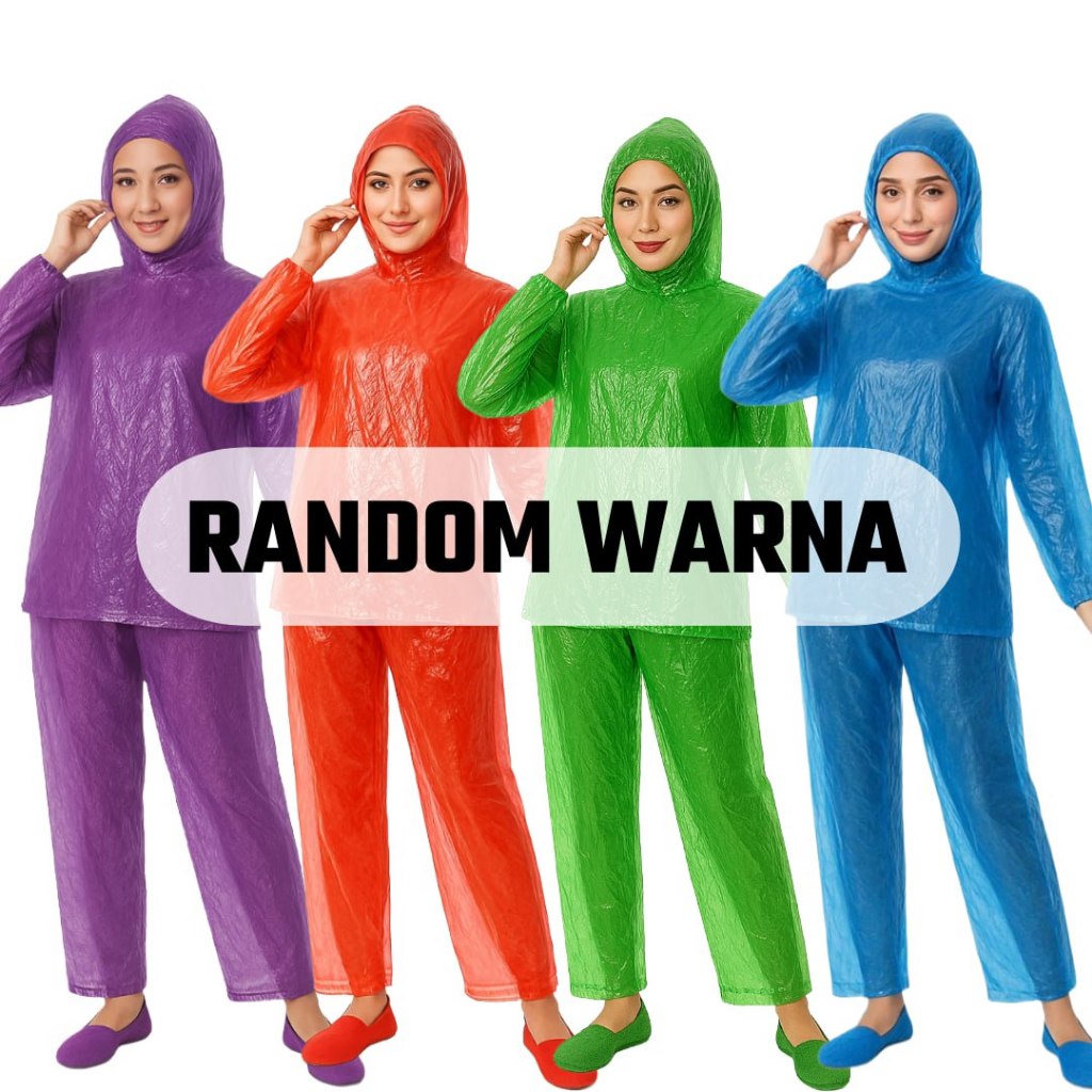 Isi 12 Pcs (1 Lusin) Jas Hujan Warna Setelan Plastik Lengan Karet (Jaket Celana) Mantel Jas Hujan Dewasa 3 Warna
