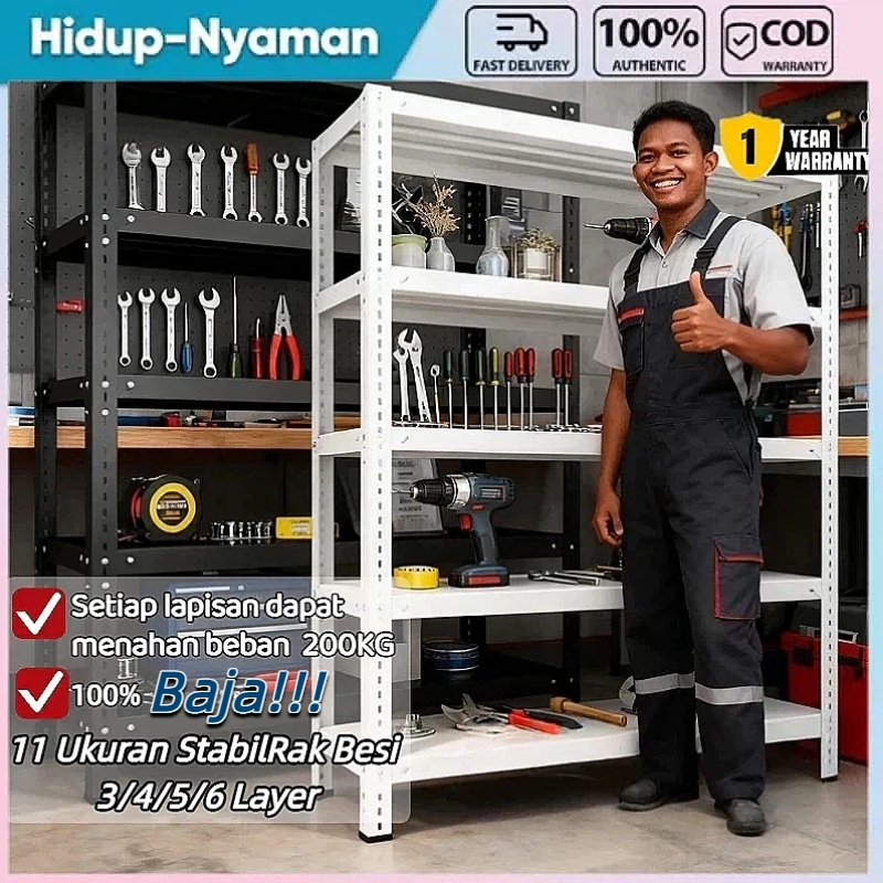 100 PERSEN Baja Minimalis Rak Besi Siku/Rak Susun Besi Serbaguna 3/4/5/6 Susun 200cm Serbaguna untuk Rak Gudang/Rak Dapur