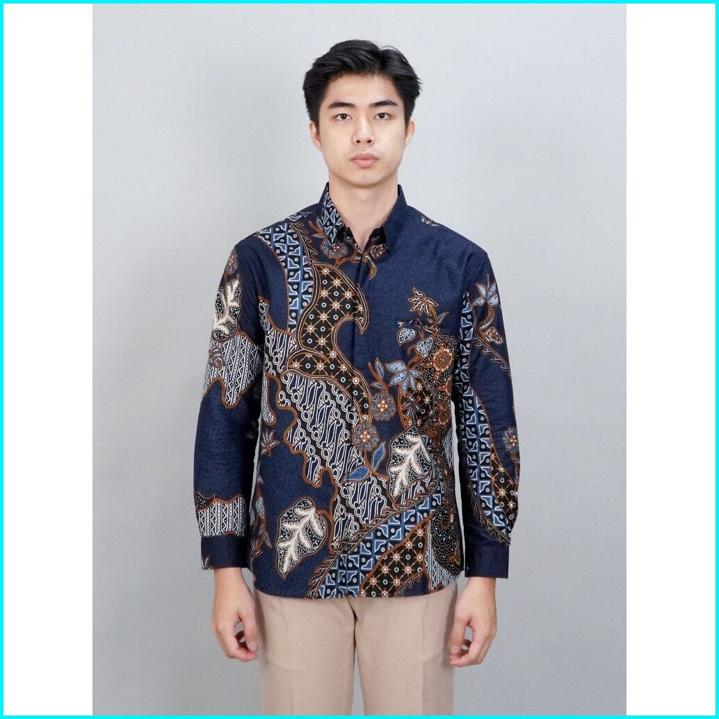Swipe Up Kemeja Batik Pria Modern Slimfit Lengan Panjang Akai Navy Brown