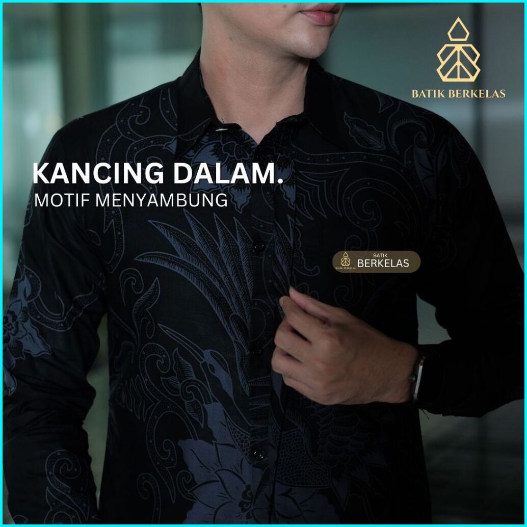 Batik Berkelas Mliwis Abu Hitam Kemeja Batik Pria Slimit Lapis Furing Katun Elegan Lengan Panjang Untuk Kantor Kondangan