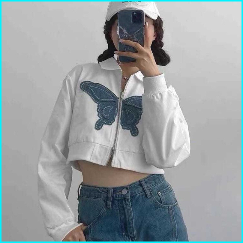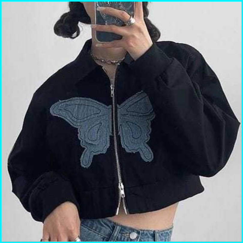 Jaket Crop Zipper Butterfly Fleece Ld 110 P 45