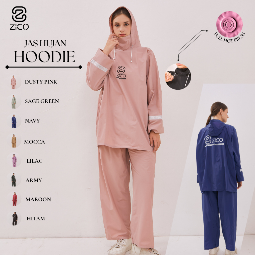 Jas Hujan Setelan Hoodie Pria Wanita Full Press Hot Press Tanpa Jahitan 100 PERSEN Premium Quality By Zico