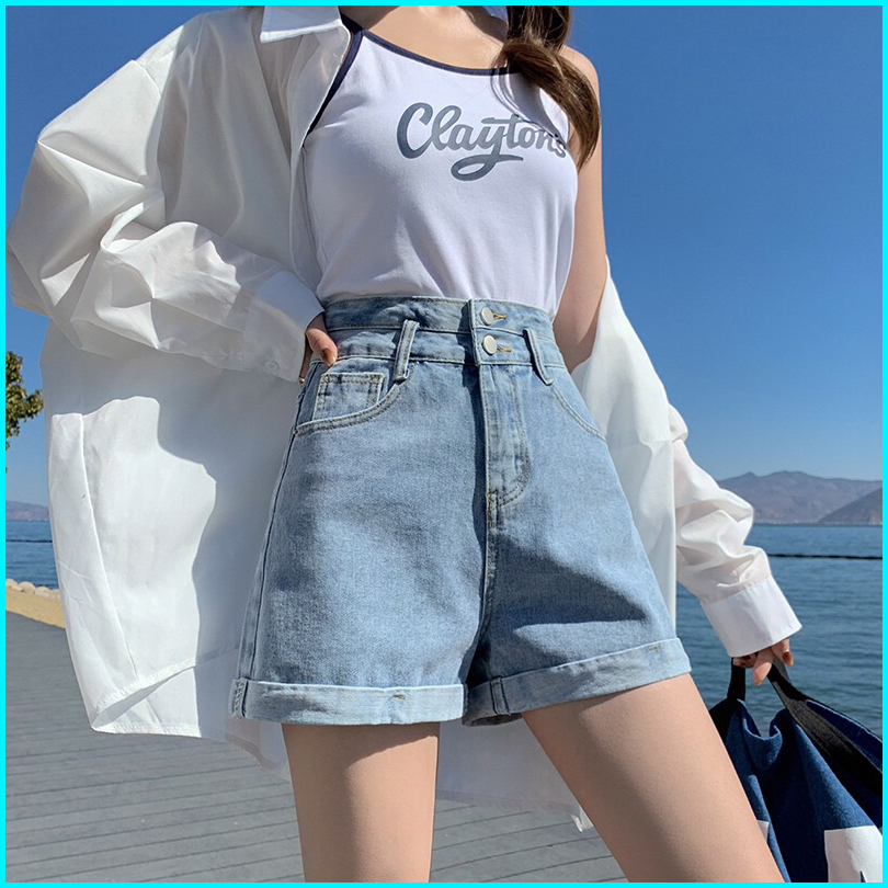 Beevalue Celana Pendek Jeans Wanita Highwaist Dua Kancing Hotpants Highwaist Bahan Premium Celana Jeans Wanita Tinggi Pi