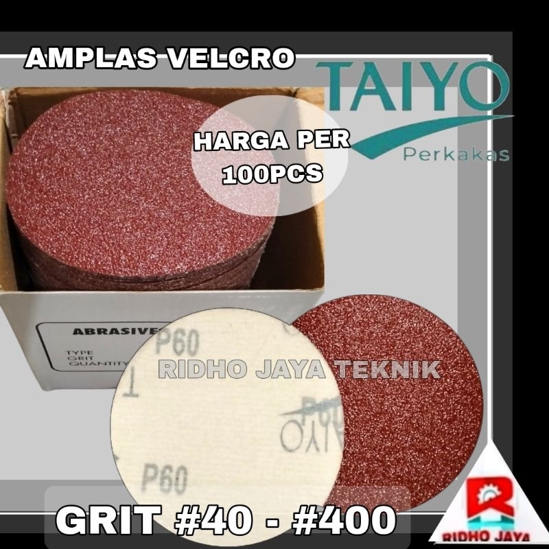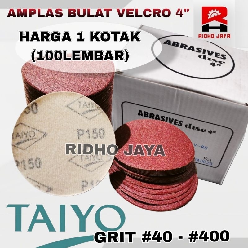 [1Kotak 100 Pcs] TAIYO Amplas Bulat Velcro 4" Inch Grit Grid 40 - 400