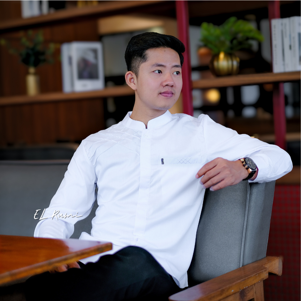 KOKO PRIA DEWASA LENGAN PANJANG BAJU MUSLIM ELRUMI TERBARU POLOS MOTIF JARING JARING
