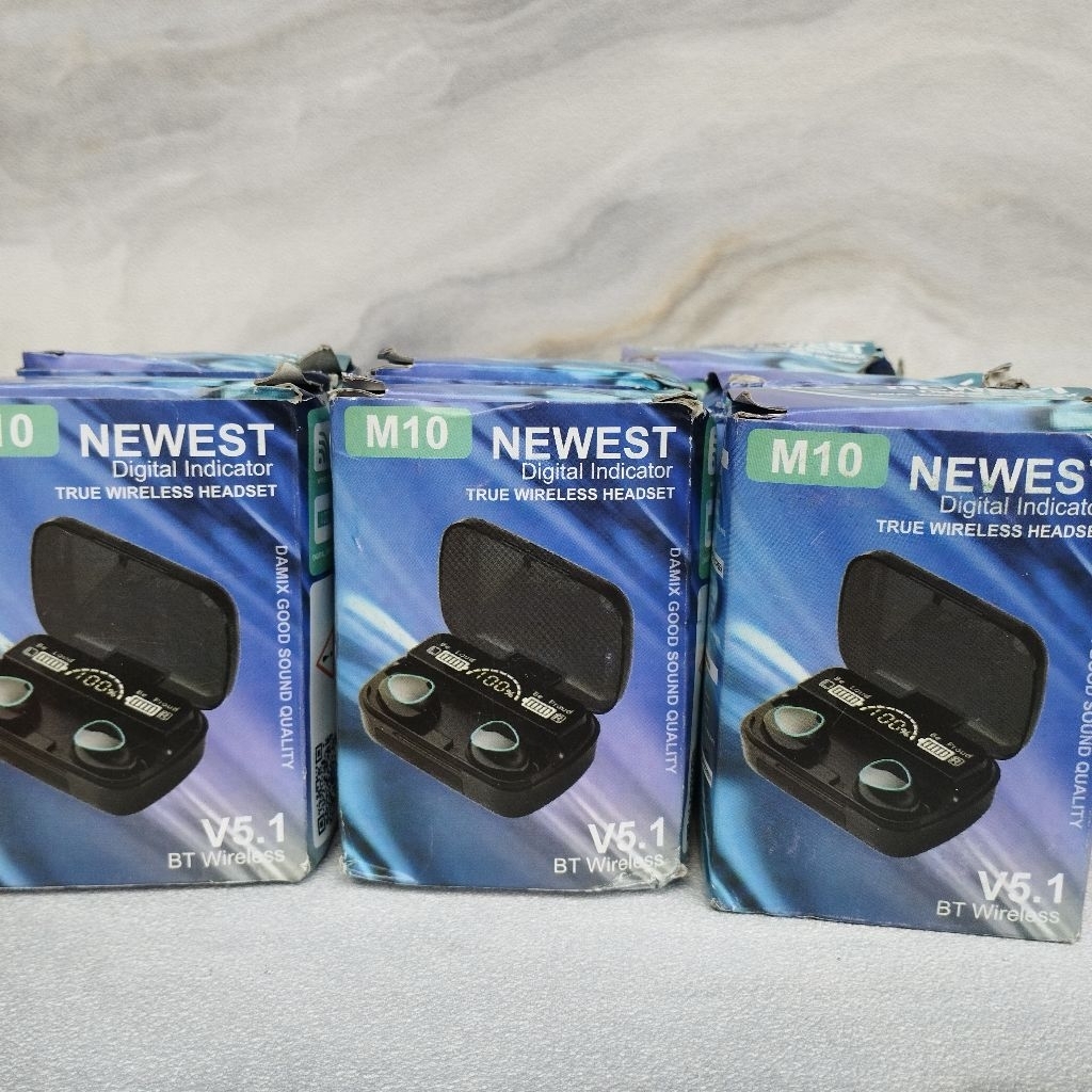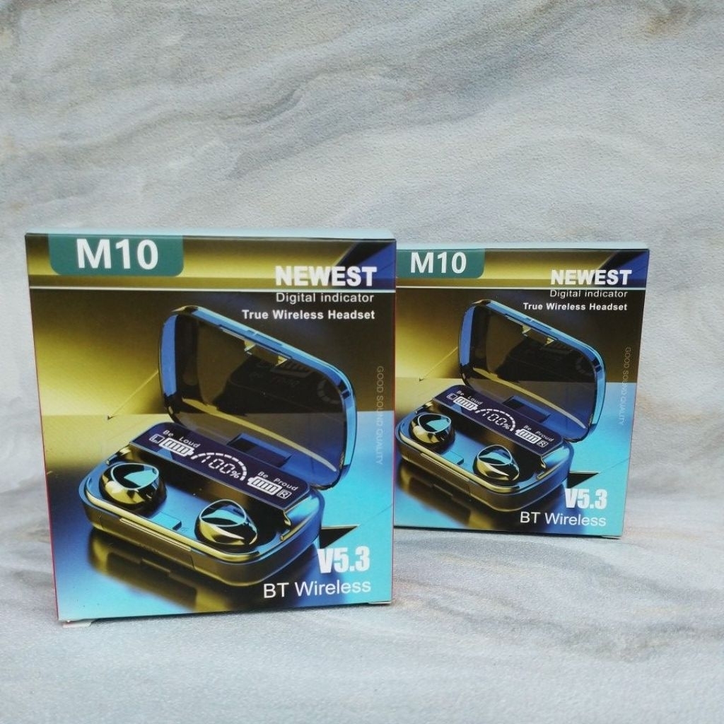 M10 Earphone Bluetooth 5.1 TWS, Tampilan LED 9D Stereo Hifi Bass Musik dengan Mikrofon, Penghilang Kebisingan Headphone Nirkabel Olahraga