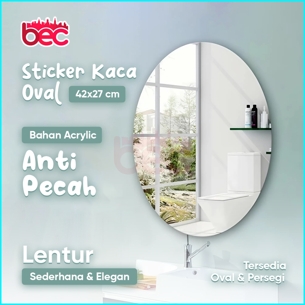 Sticker Cermin Oval 3d Stiker Dinding Kaca Acrylic Sudah Dengan Perekat Wallpaper Mirror Kamar Mandi