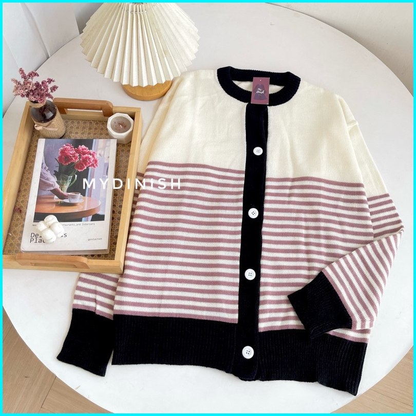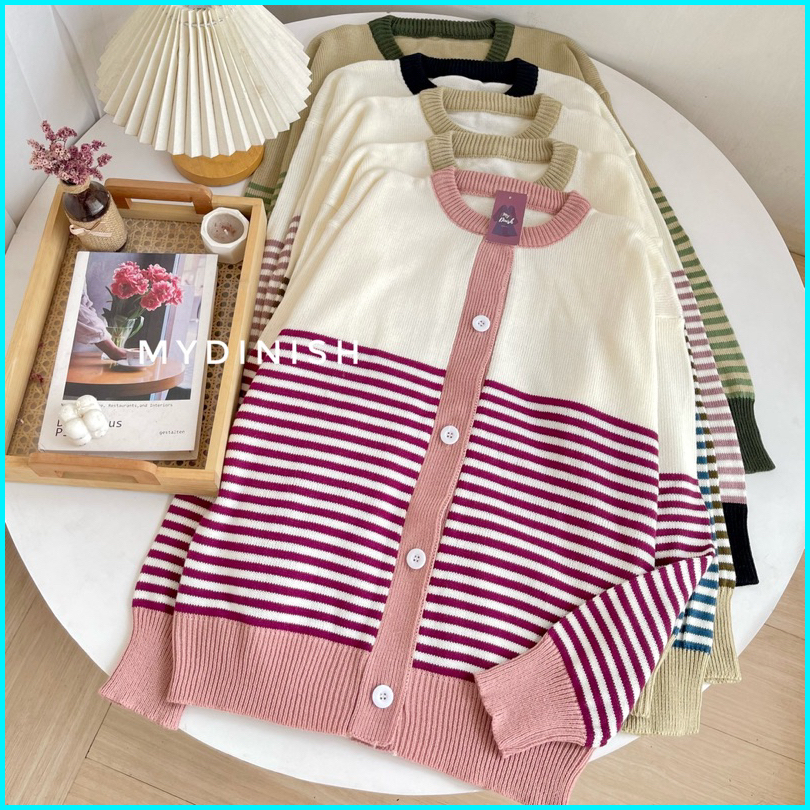 Jasmin Cardigan Rajut Wanita Korean Style Motif Garis