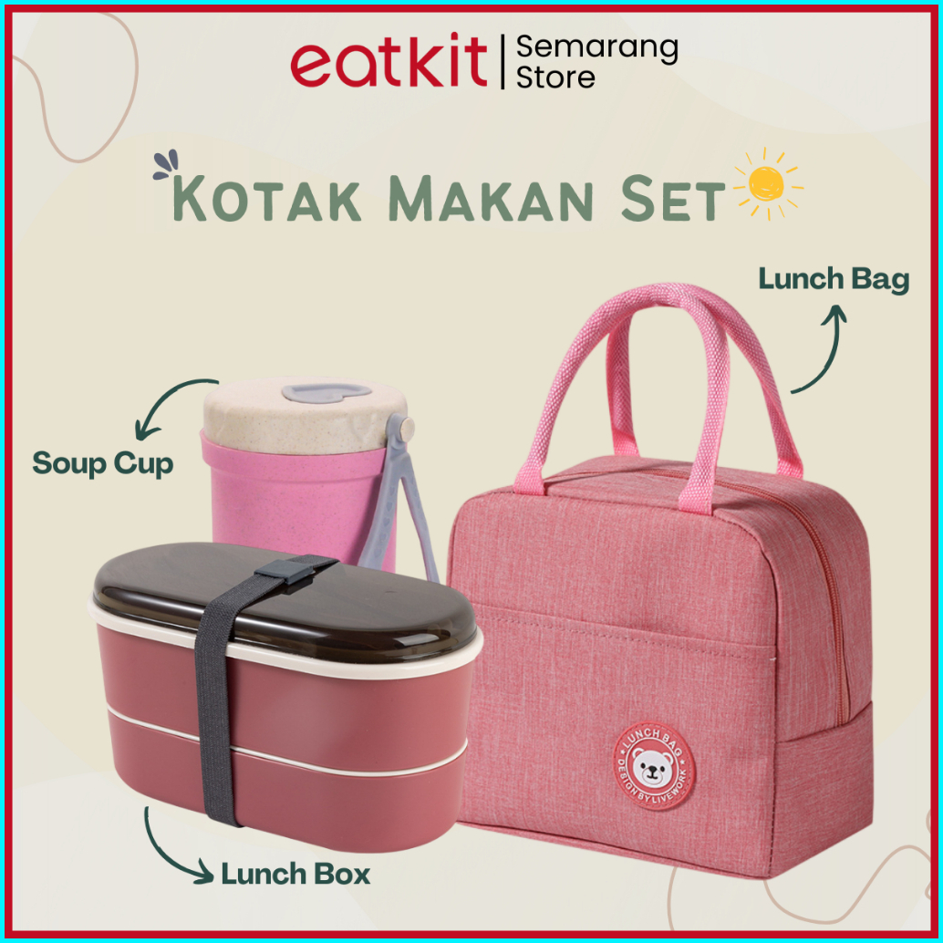 Eatkit 3in1 Kotak Makan Set Lunch Box Kotak Makan 700ml 2 Layers Cangkir Soup Wheatstraw Anti Panas