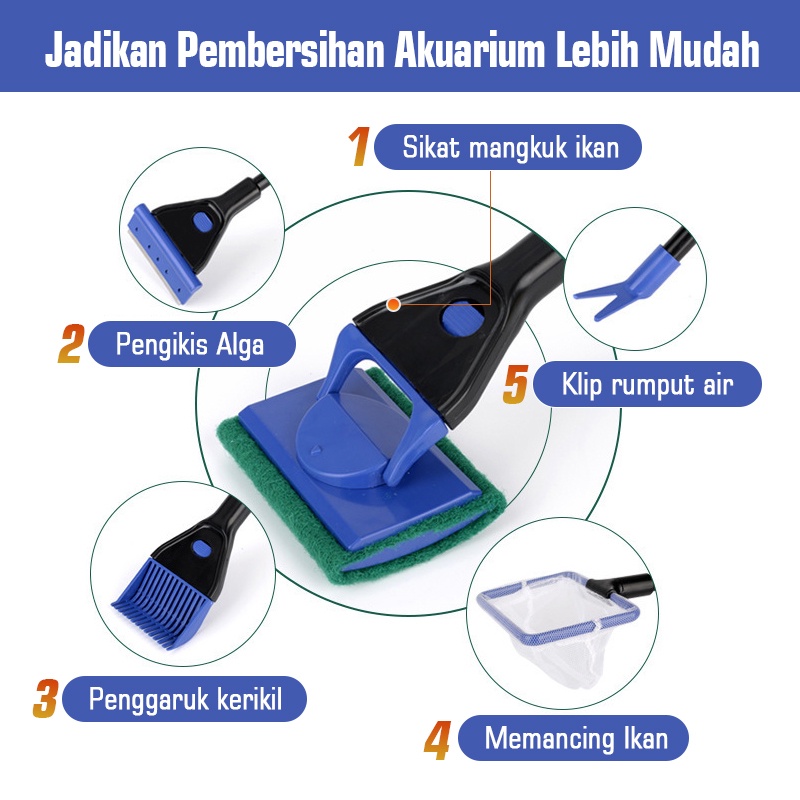 AQUA TOOLS pembersih kaca aquarium 5 in 1
