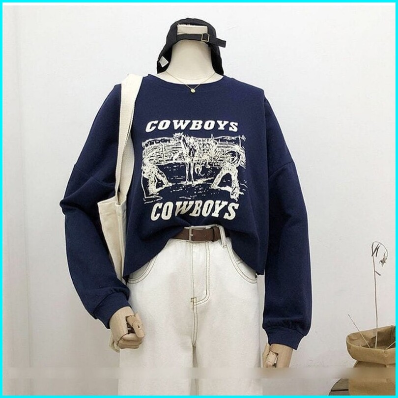 Cowboys Sweater Oversize - Crewneck Sweater Wanita - Pakaian Wanita Terlaris