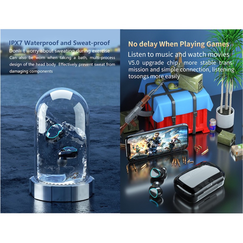 New Upgrade M10 TWS Bluetooth 5.1 in-Ear 9D Touch Srt Wireless Earphone gaming case jadi werbank digital screen