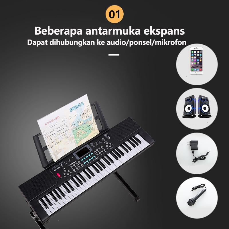 【Ready】61 Keys Electric Piano Untuk Pemula/ Dengan Mikrofon dan Adaptor Electronic Learning Keyboard