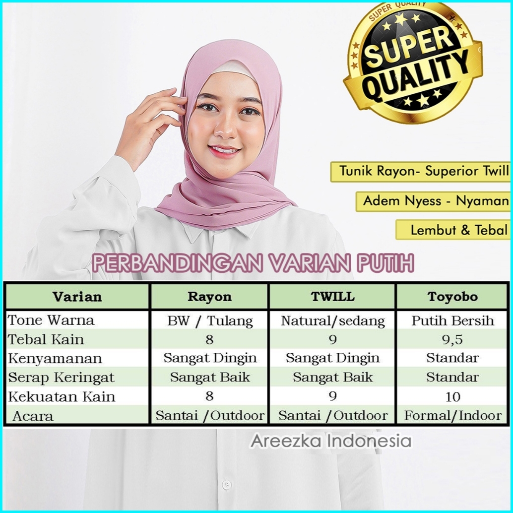Merah - TWILL Rayon, Mahogany, Choco Milk, Biru Navy, Hitam, Lime Canary, BlueSky New, Mint Wardah, Hijau Army, Sage, Olive, Kunyit, Creamy Latte, TaRo_, Lilac, Briliant Peach, Cookies, EmiRaLd, Maroon, Denim, Mid_Grey, HazeLnut, TOYOBO- Putih Bersih, Putih ~ Rayon TWILL, BW ~ Rayon