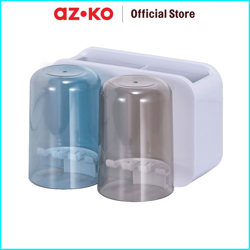 Azko Stora Tempat Sikat Gigi Dengan 2 Gelas Toothbrush Holder Organizer Alat Pembersih Gigi Wadah Odol Aksesoris Kamar M