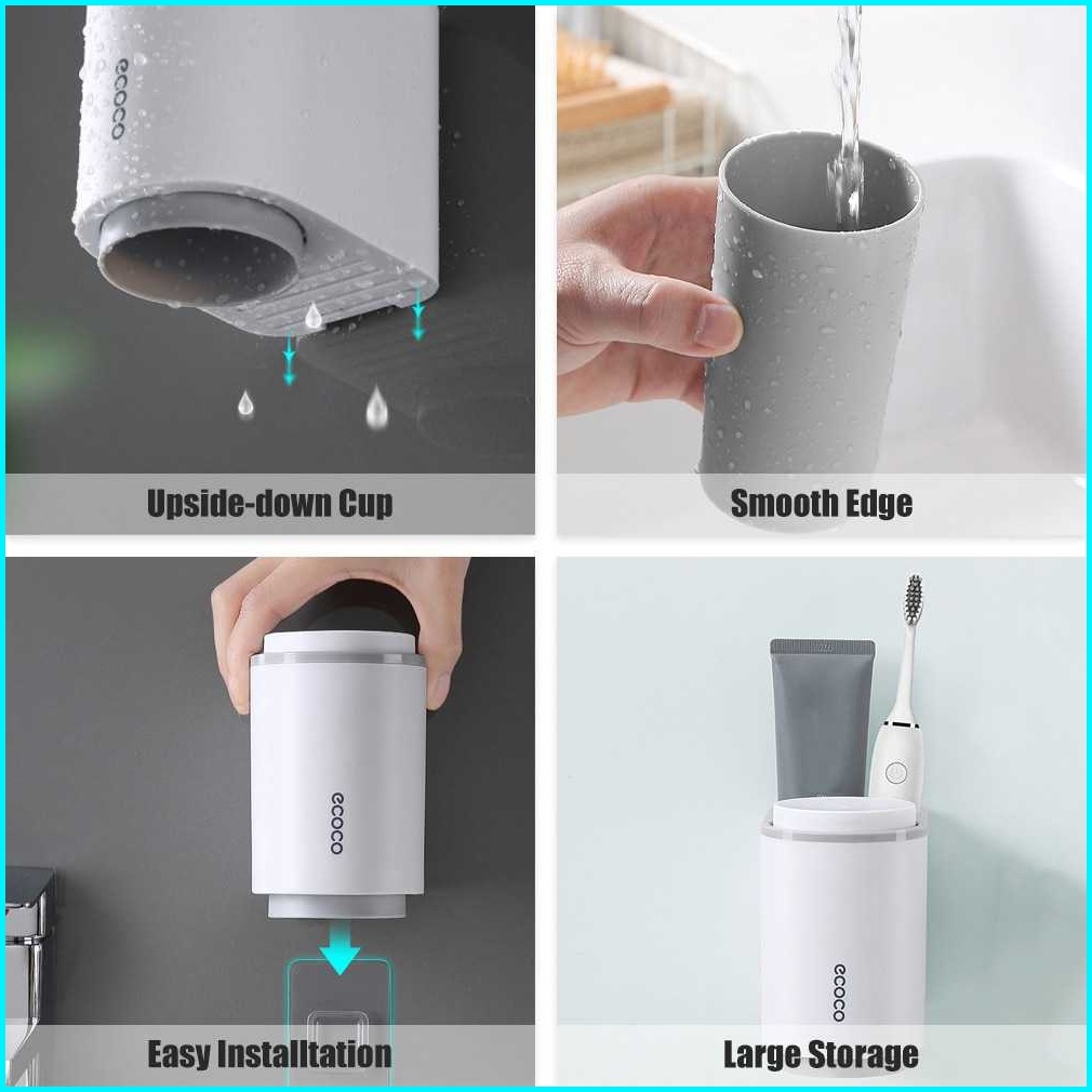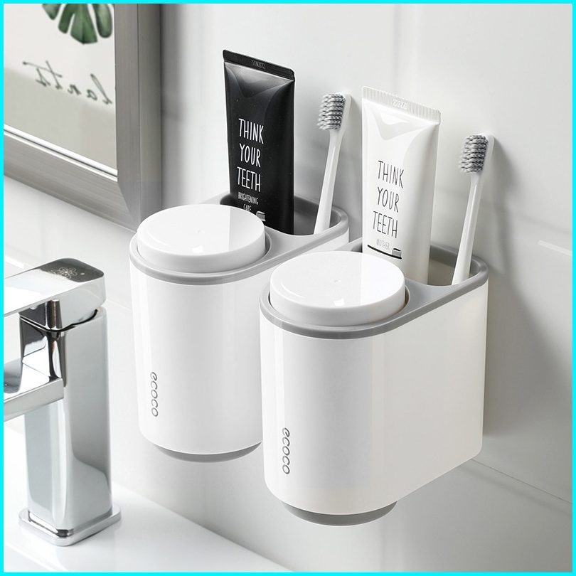 Rak Dinding Tempel Kamar Mandi Tempat Sikat Pasta Gigi Odol Dengan 2 Gelas Magnetic Desain Aestetik Minimalis