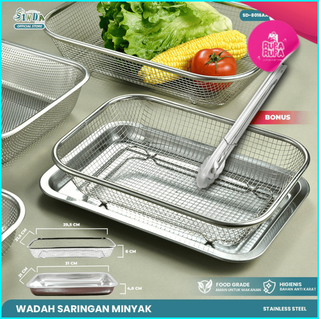8016 8017 Nampan Stainless Set Saringan Serbaguna Bonus Capitan Bbq Nampan Set Tirisan