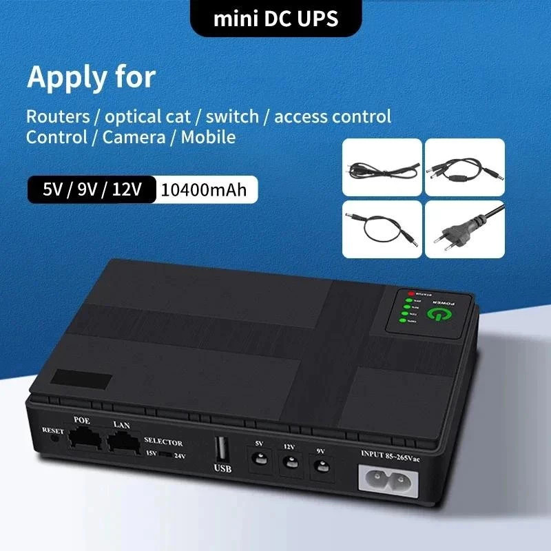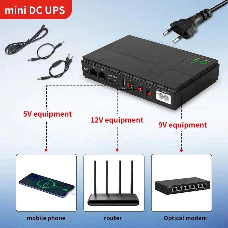 UPS Backup wer Adapter 36W 10400mAh Large Capty Mini rtable UPS Rer Uninterruptible wer Supply 5V 9V 12V UPS Rer Optical Cat Built-in Adapter Backup wer Supply Eu