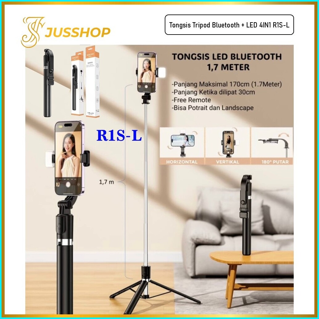 Tongsis Bluetooth 4in1 R1s-l Tongsis Tripod Remote Shutter Lampu Led 170cm Selfie Stick 360 Derajat