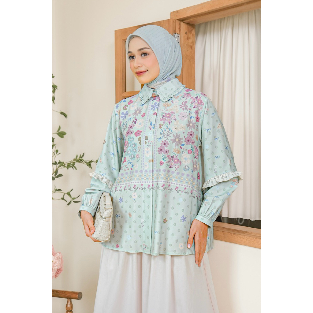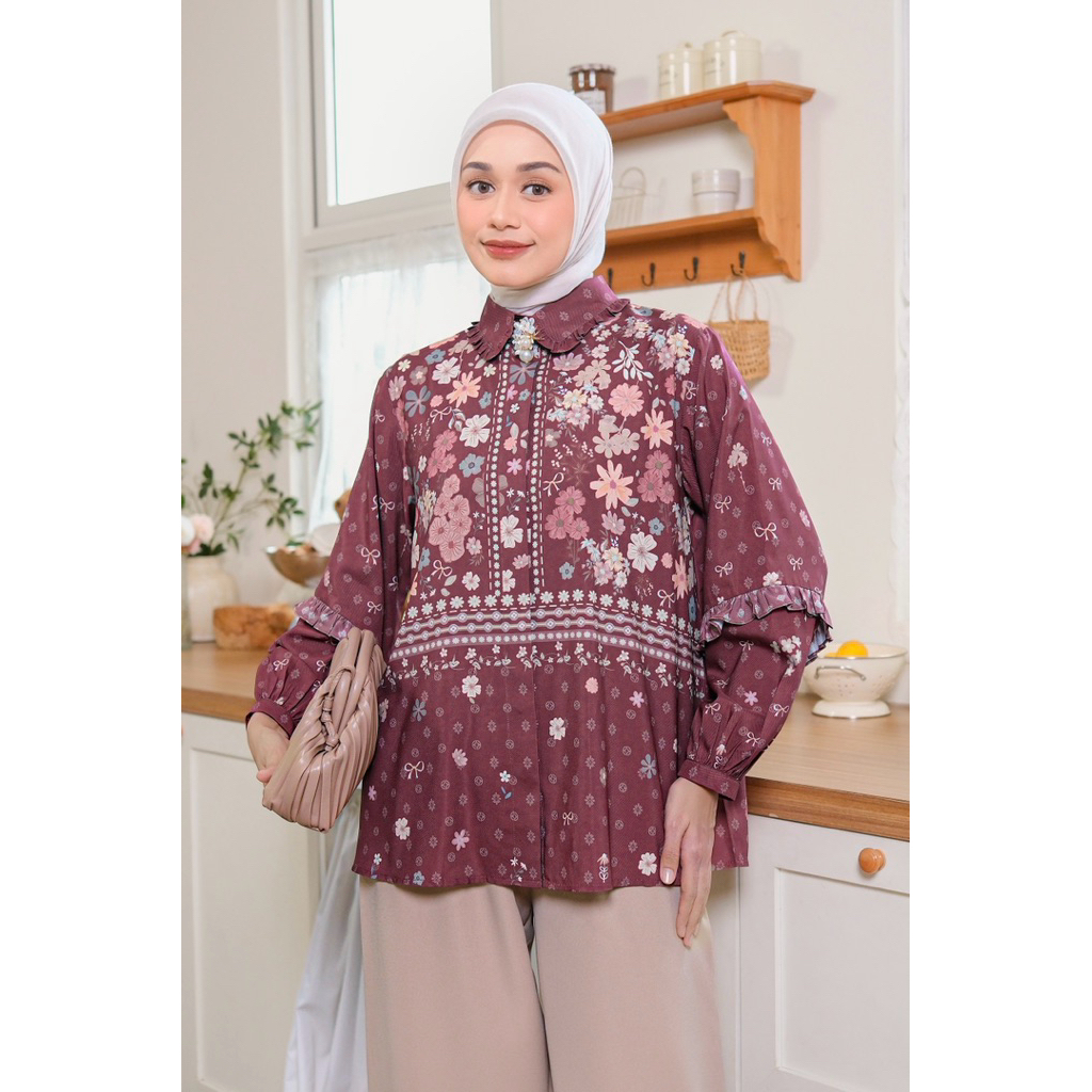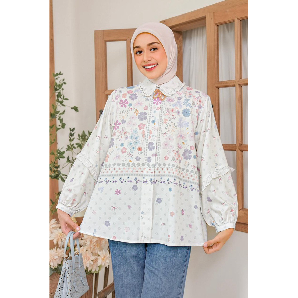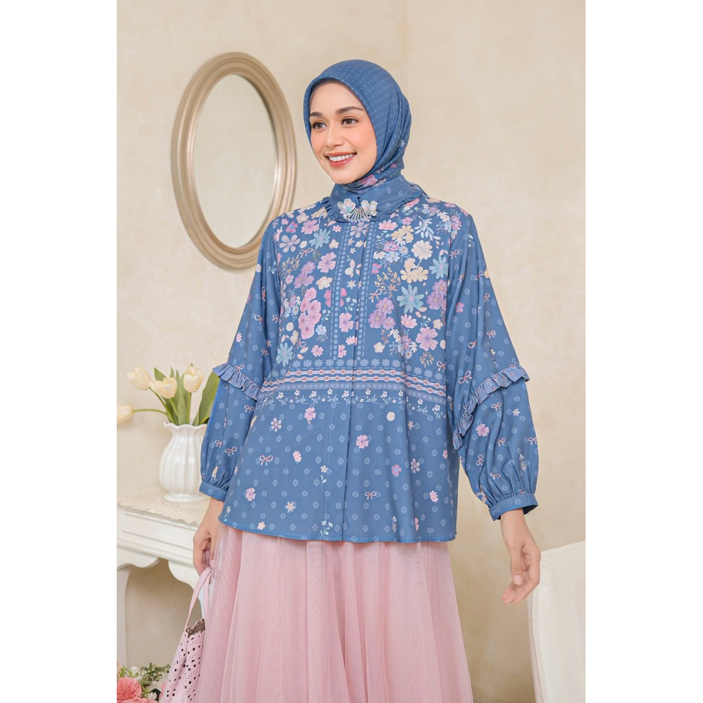 Kienka - Denara Blouse Monogram Bunga-Bunga Printed Premium