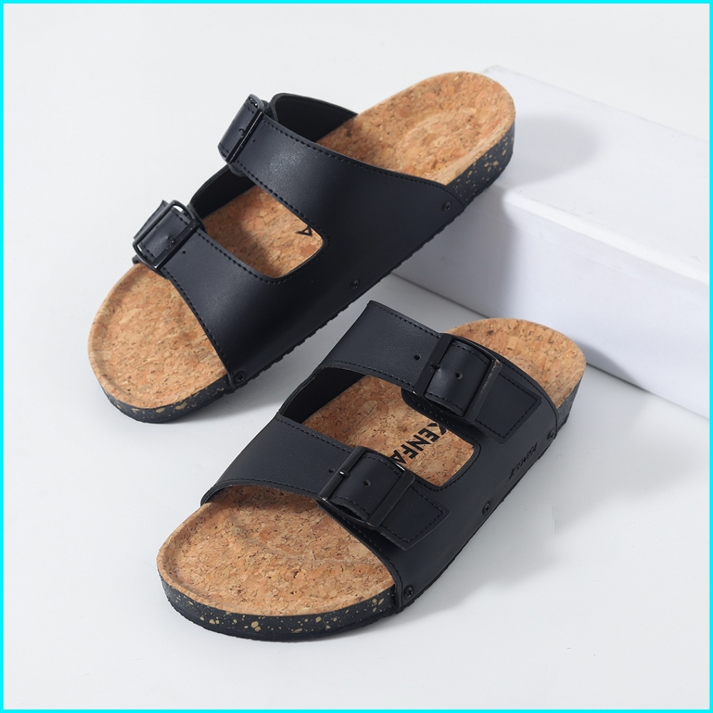 Kenfa - Nive M Black Sandal Casual Pria Wanita Formal Hitam Simple Empuk Nyaman Stylist