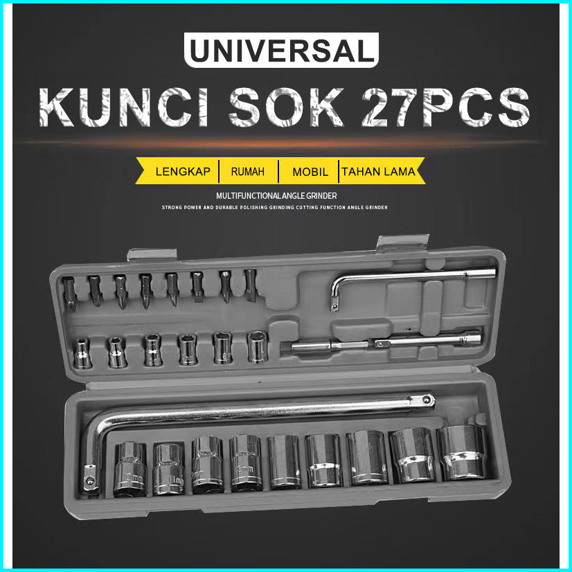 Kunci Set Kunci Sock Socket Shock Sok Wrench 27 Pcs Toolkit - Kunci Set Gagang Sok Shock Full Set 27pcs
