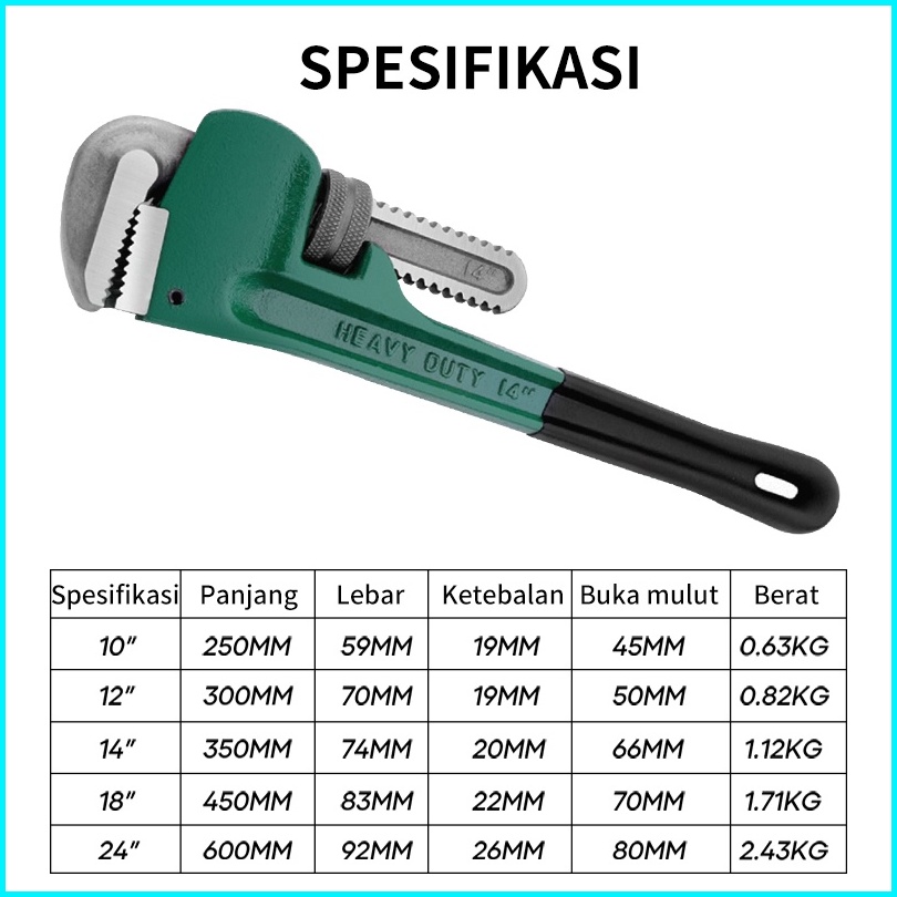Isku Kunci Pipa Pipe Wrench Kunci Ledeng 10 12 14 18 24 Inch