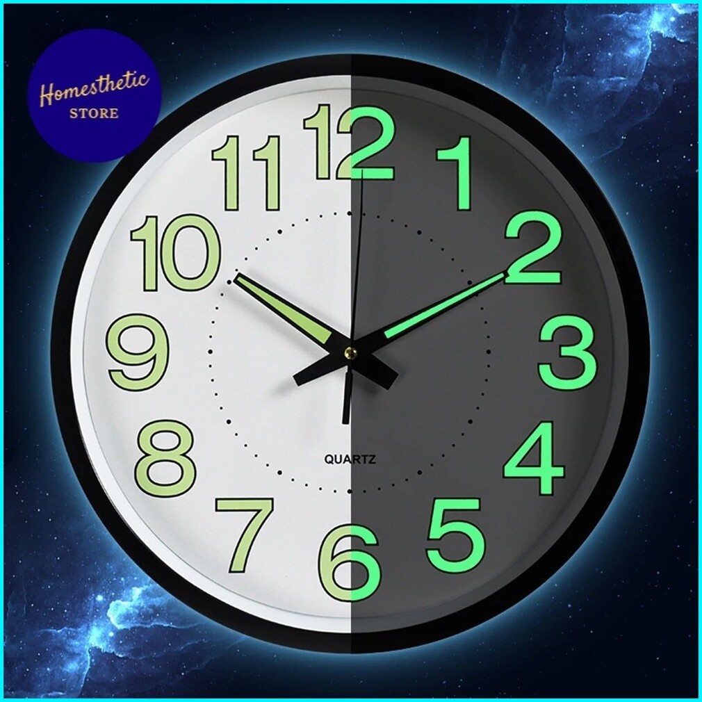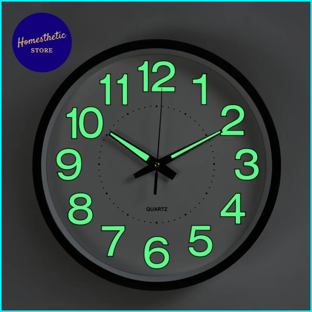 Jam Dinding Bulat Quartz Luminous Glow In The Dark Gitd Nyala Menyala Dalam Gelap 30cm Creative Design Modern Silent Mov