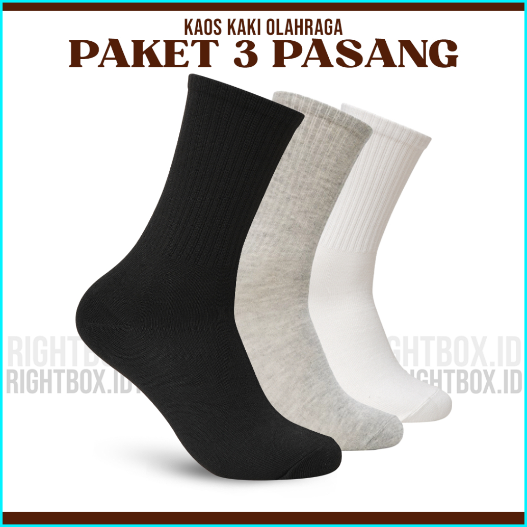 Rightbox Id Paket 3 Pasang Kaos Kaki Olahraga Bahan Tebal Ukuran Dewasa