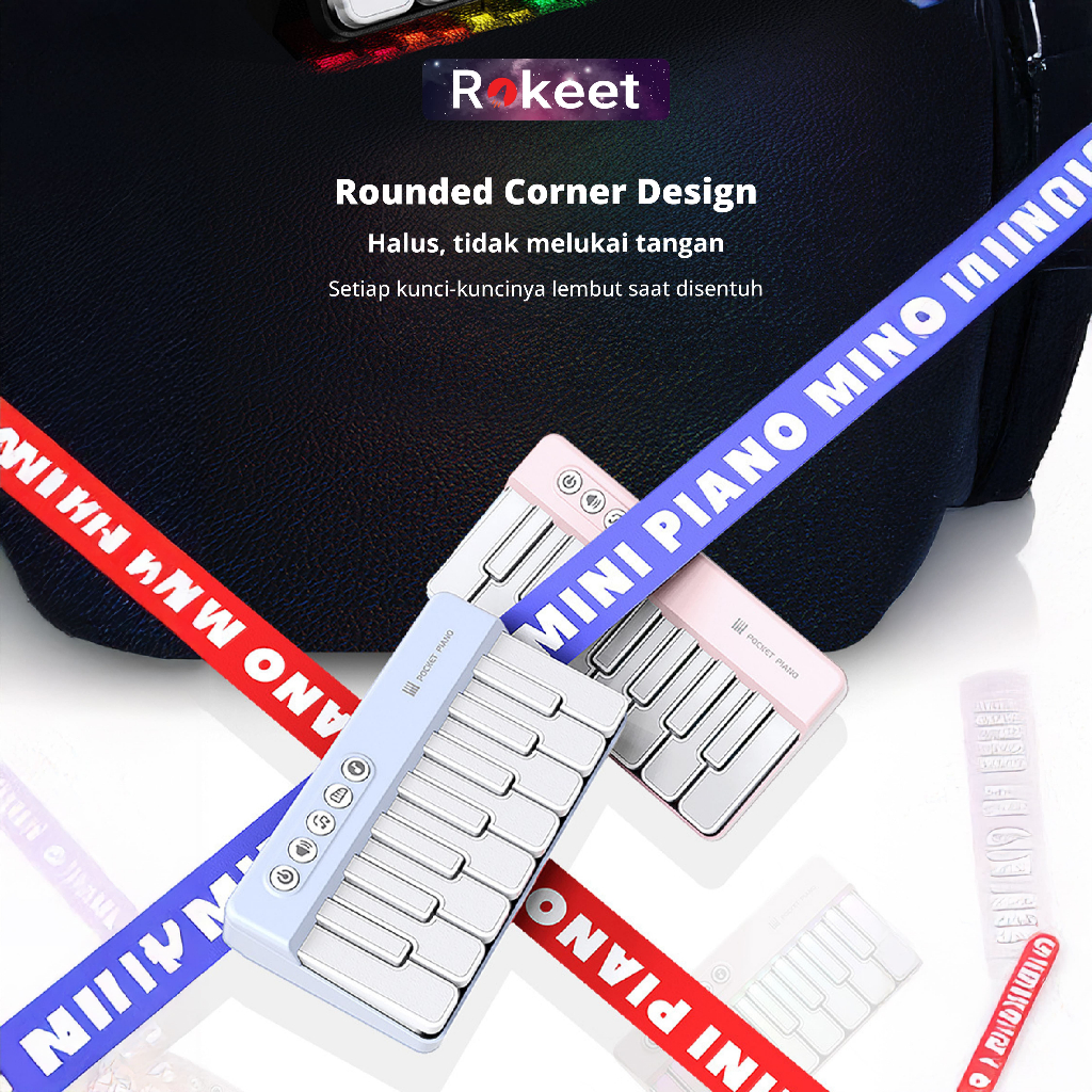 Rokeet Mini Pocket Piano LED 7 Mode Warna-Warni Keyboard Musik Portable Suara Premium Anti Bising Tuts Lembut