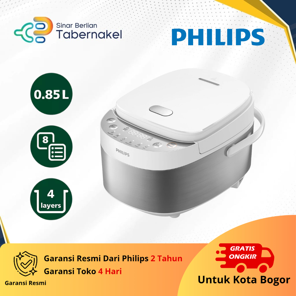Rice Cooker Philips 0.85L HD3170/33 – 8 menu otomatis, ukuran mini hemat tempat, nasi cepat matang, inner pot anti lengket, Garansi Resmi – Bogor
