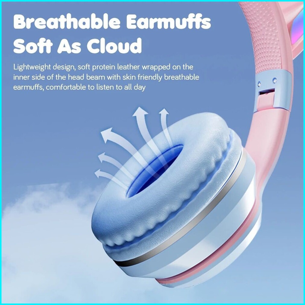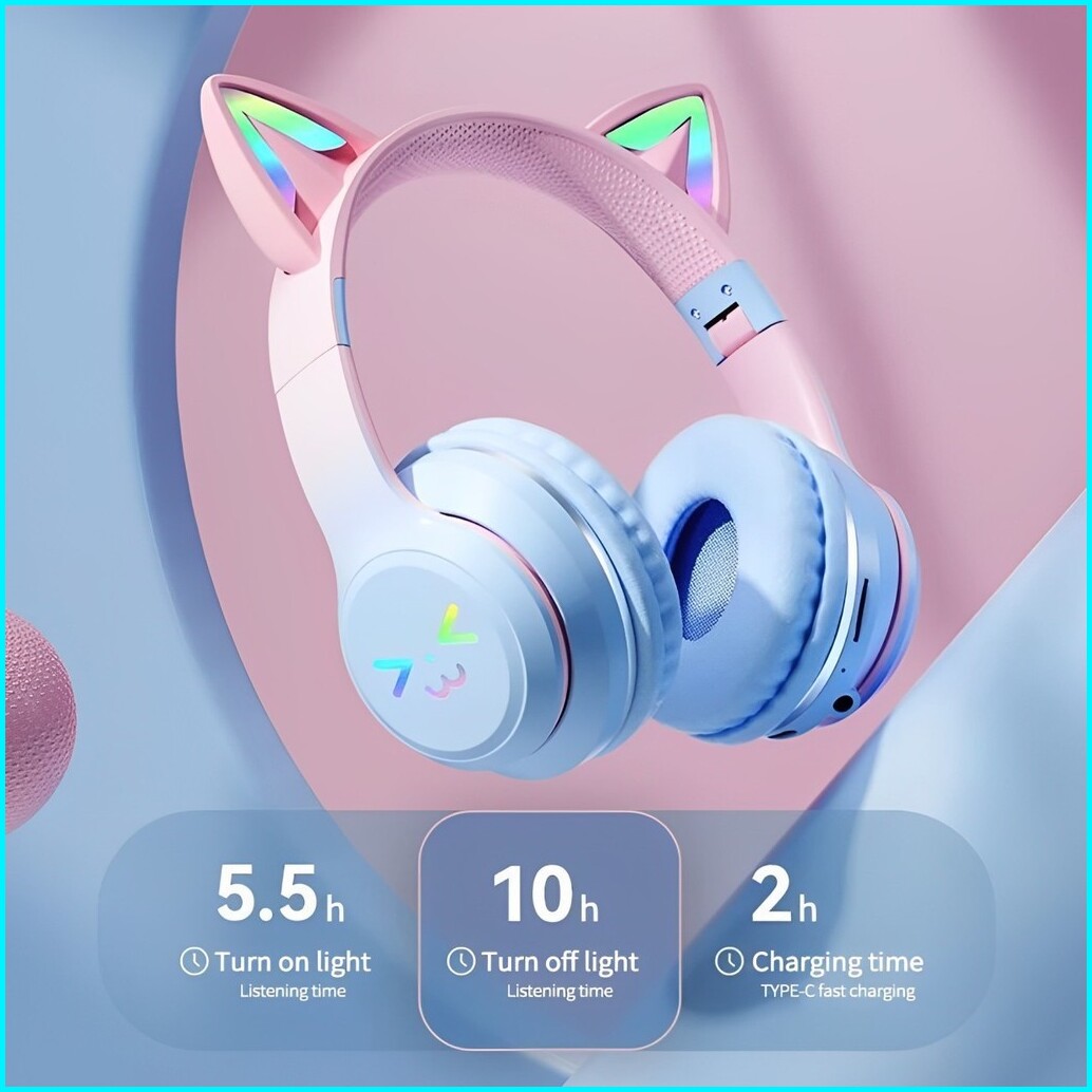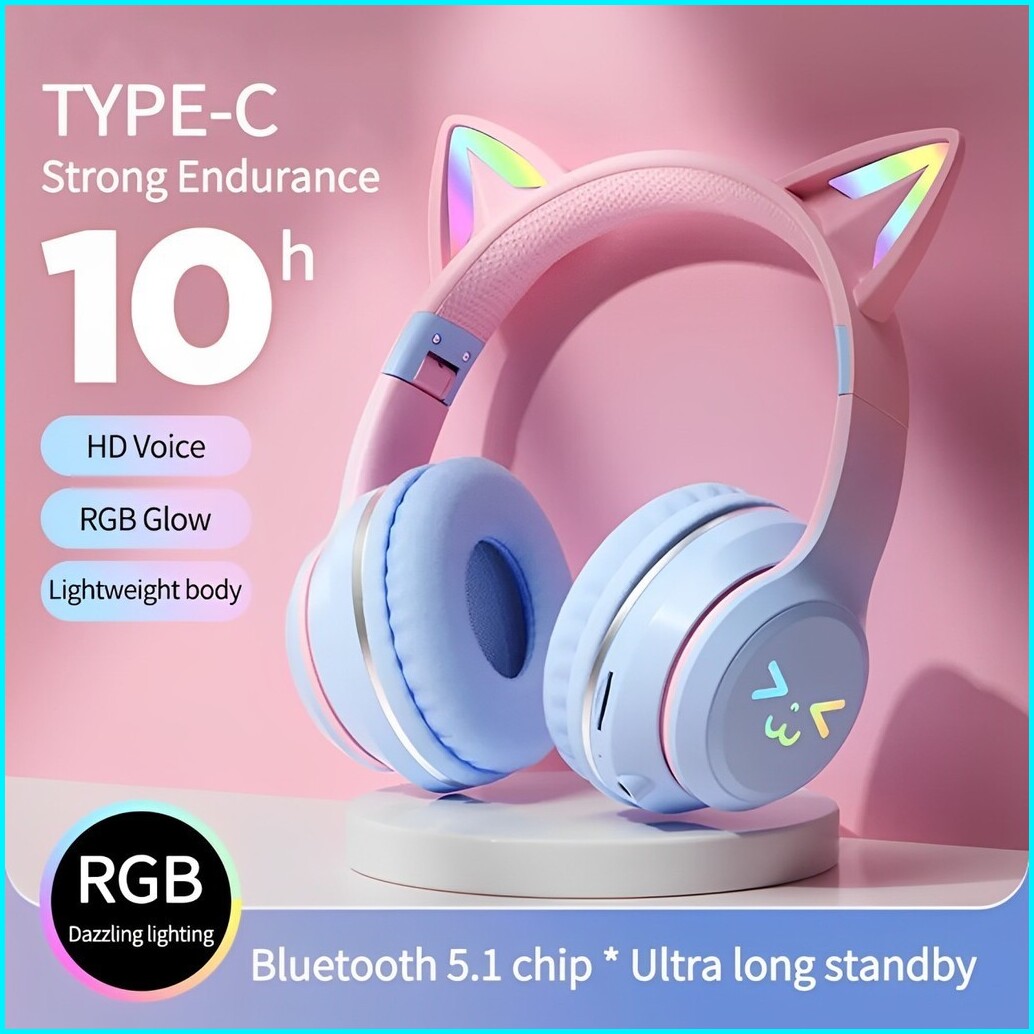Headphone Rgb Headset Hadiah Anak Perempuan Kucing Lucu Dengan Mikrofon Headset Gaming Musik Stereo