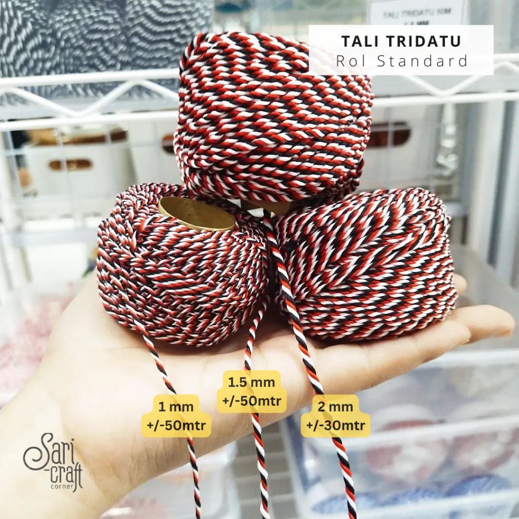 Tali Tridatu 1mm 1.5mm 2mm Rol Tali Plintir Tali Gelang Kalung