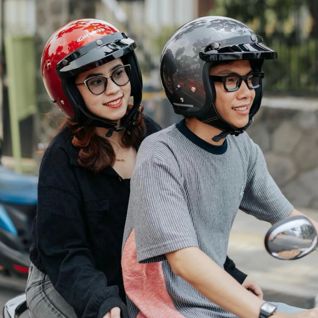 Helm Carglos Bogo Retro Dewasa Premium SNI Kaca Datar Murah