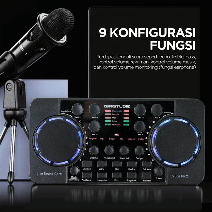 Audio Bluetooth USB External Soundcard Live Microphone - TaffSTUDIO V300 Pro Card Plastik Komputer Laptop - Hitam