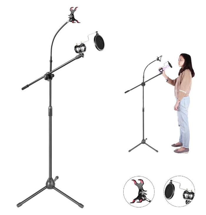 TaffSTUDIO Bracket Stand Mikrofon Berdiri Lantai Microphone Phone Holder - Hitam