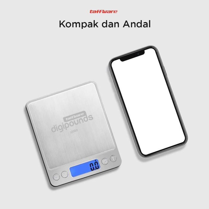 Taffware Digipounds Timbangan Dapur Digital 1kg Akurasi 0.1g - i2000 - Silver Standar