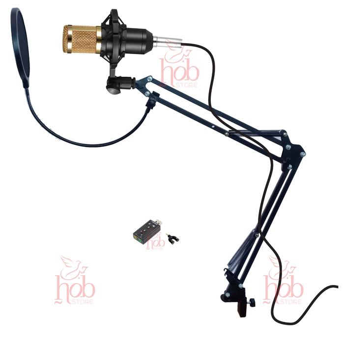 Taffstudio Microphone BM 800 Mikrofon BM800 & Stand Arm + Pop Filter - HitamGOLD